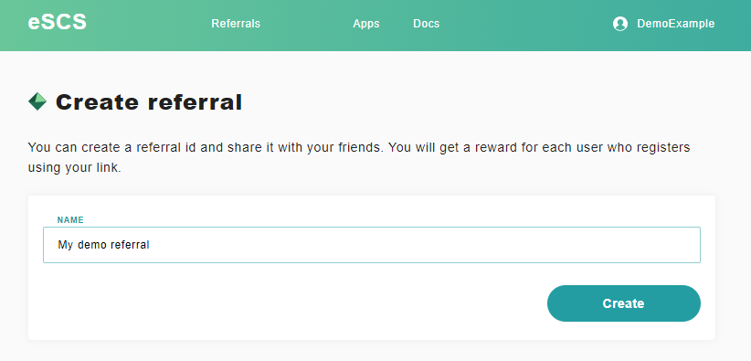 Click "Add new referral" , enter any name and press "Create"