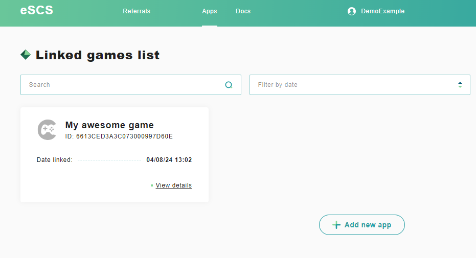Go back to "Apps" and click "View details" on your game.